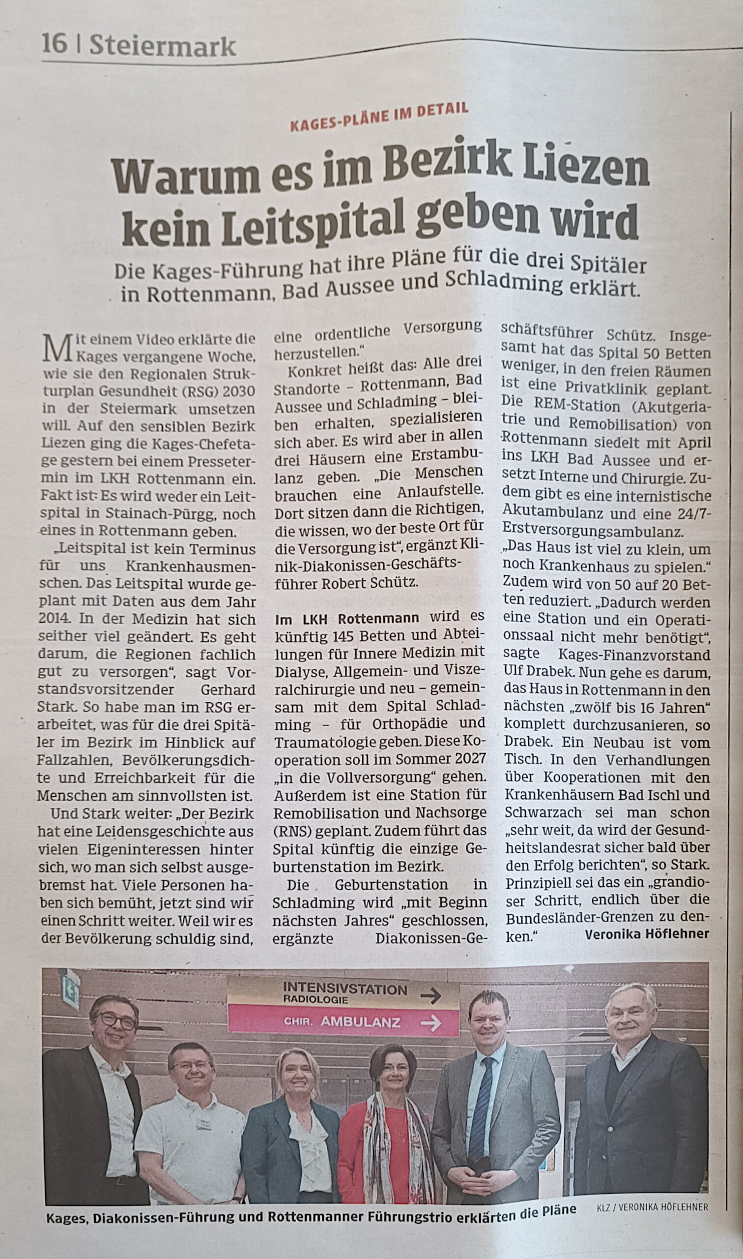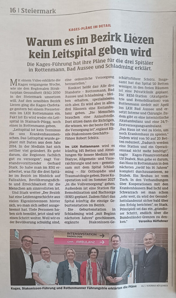 — Dr. Stark / Kages: Der Bezirk braucht kein Leitspital (weder in Rottenmann noch in Stainach); hat man