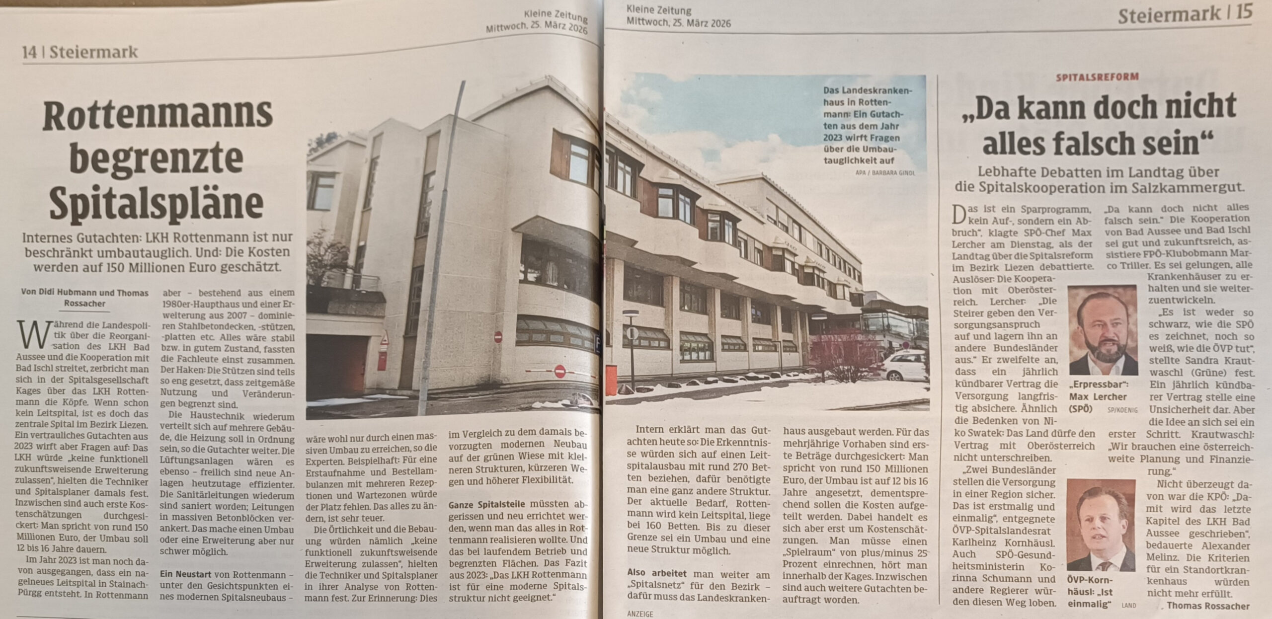 »Die Politik habe offenbar nur im Sinne, möglichst viele Standorte zu sichern – im Endeffekt für Wählerstimmen.« Einen massiven Rückschritt sieht er deshalb auch in der Diskussion rund um das geplante Leitspital in Stainach.