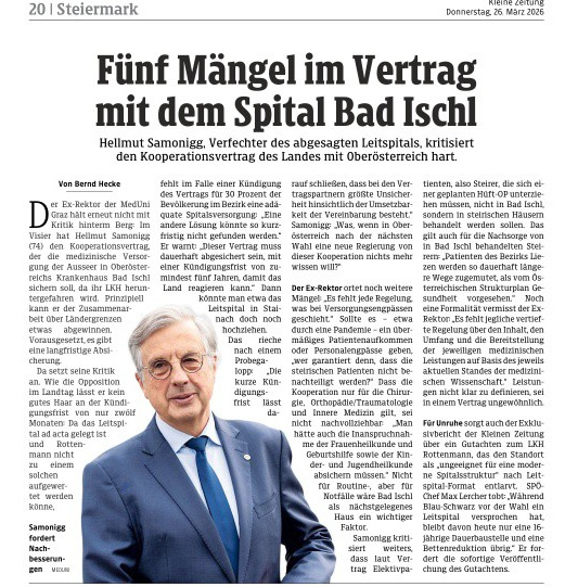 Gesundheitsökonom Dr. Ernest Pichlbauer übt Kritik an der steirischen Gesundheits-Landschaft